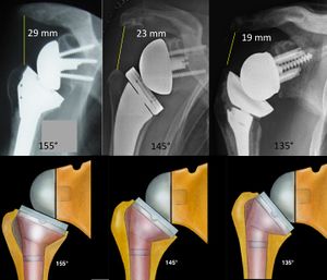 - ↑ Ferle M, Pastor MF, Hagenah J, Hurschler C, Smith T. Effect of the humeral neck-shaft angle and glenosphere lateralization on stability of reverse shoulder arthroplasty: a cadaveric study. J Shoulder Elbow Surg 2019;28:966-973