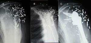 - ↑ 140.0 140.1 Zumstein MA1, Pinedo M, Old J, Boileau P. Problems, complications, reoperations, and revisions in reverse total shoulder arthroplasty: a systematic review. J Shoulder Elbow Surg. 2011 Jan;20(1):146-57