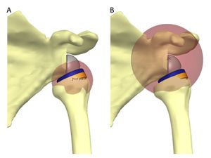- ↑ Mollon B, Mahure SA, Roche CP, Zuckerman JD. Impact of glenosphere size on clinical outcomes after reverse total shoulder arthroplasty: an analysis of 297 shoulders. J Shoulder Elbow Surg. 2016;25(5):763-71